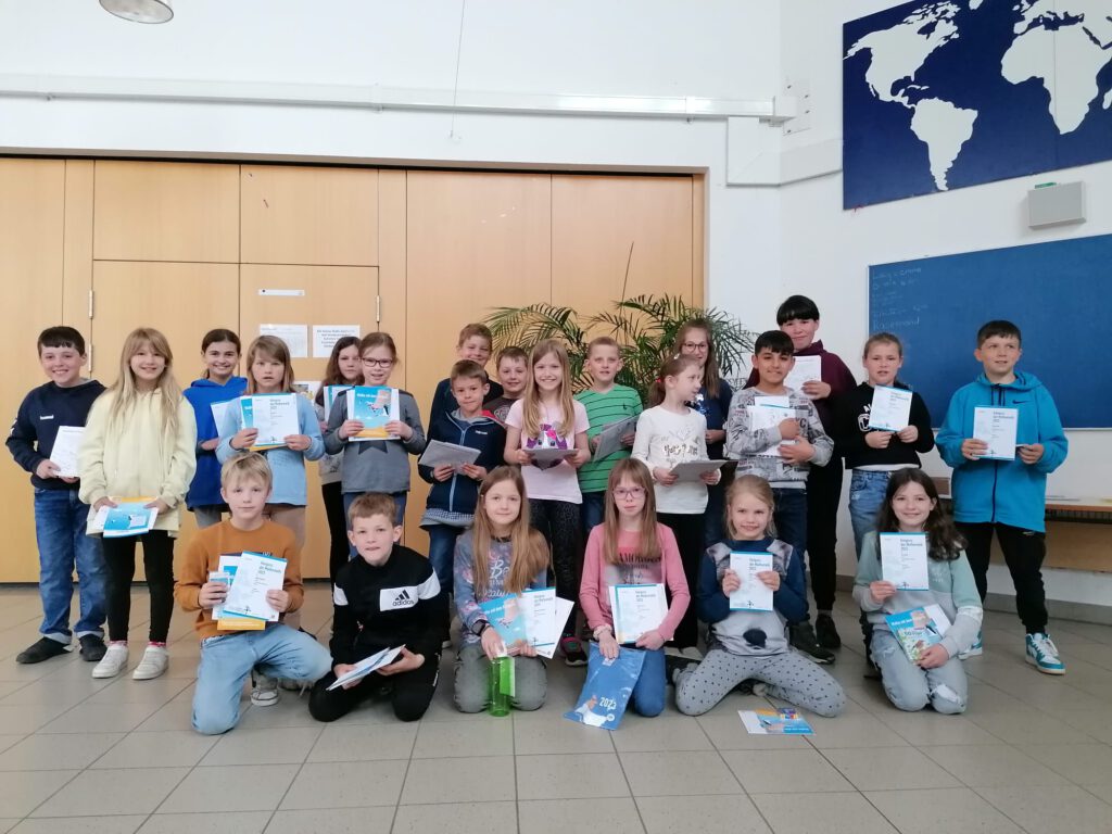Dieses Jahr waren 24 Kinder der Schöllhammer Grundschule beim Känguru-Wettbewerb der Mathematik dabei. Die Rechner und Knobler sammelten fleißig Punkte. In diesem Jahr haben vier Mädchen und zwei Jungs die meisten Punkte erzielt und wurden dafür mit besonderen Geschenken ausgezeichnet. Alle anderen bekamen selbstverständlich ebenfalls eine Urkunde. Ein herzliches Dankeschön an Herrn Michel für die Organisation und Durchführung.